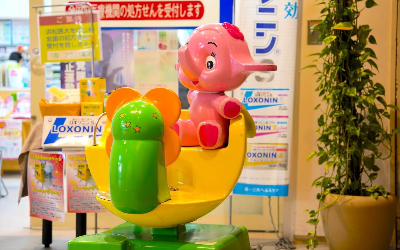1回50円で遊べるサトウ製薬のサトコちゃんムーバーを店舗裏口に設置しております。